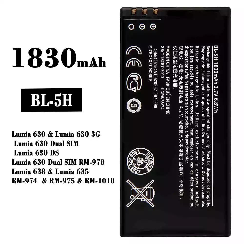 Baterija BL-5H za Nokia Lumia 630 / Lumia 630 3G / Lumia 630 Dual SIM / Lumia 630 DS / Lumia 630 Dual SIM RM-978 / Lumia 638 / Lumia 635 / RM-974 / RM-975 / RM-1010
