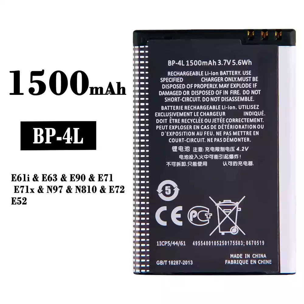 Baterija mobilnega telefona BP-4L za Nokia E61i/E63/E90/E71/E71x/N97/N810/E72/E52